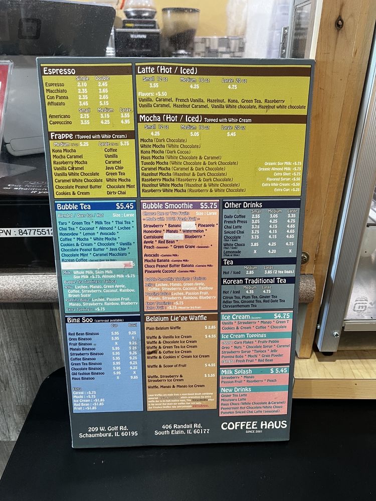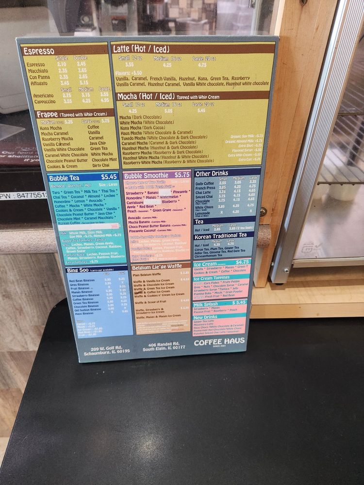 Coffee Haus Menu
